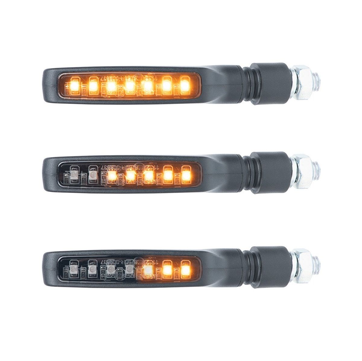 Sekvenčné LED smerovky Nightglider značky OXFORD sú osadné 7-mimi extra svietivými LED diódami so zatmaveným sklíčkom, disponujú kvalitným robustným plášťom v čiernom matnom prevedení a sú homologizované pre použitie v krajinách EÚ. Sada obsahuje 1 pár smeroviek a 1 pár odporov. Napätie je 12V, príkon 2W a rozmery 116 x 16 x 25 mm.
