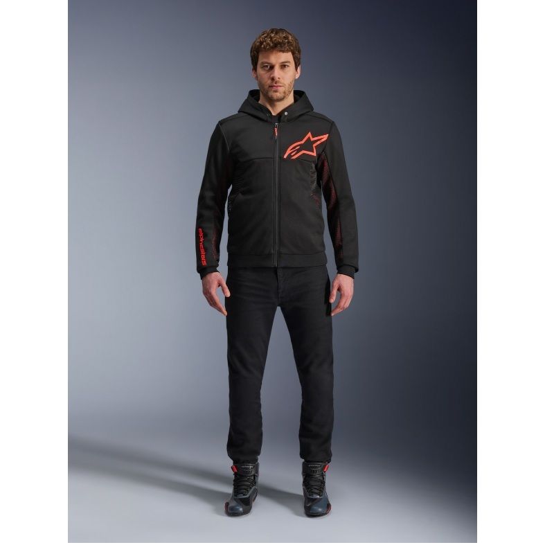 Bunda Chrome Air Sport značky ALPINESTARS vhodná najmä do mesta je vyrobená z technickej fleece tkaniny s podšívkou so spevnením pomocou panelov z aramidových vlákien a sieťovanými panelmi na vnútornej strane rukávov a v podpazuší ktoré zabezpečujú vysokú priedušnosť. Bunda je CE certifikovaná, má CE certifikované odnímateľné protektory ramien a lakťov, je prispôsobená na použitie s airbagovými systémami TECH-AIR®. Disponuje kapucňou, pružným pútkom pre fikxáciu rukávov, vonkajšími vreckami a vnútorným vodeodolným vreckom. Možno ju prepojiť s nohavicami pomocou textilných pútok.
