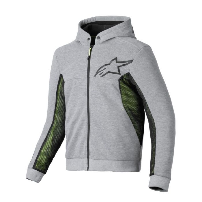 Bunda Chrome Air Sport značky ALPINESTARS vhodná najmä do mesta je vyrobená z technickej fleece tkaniny s podšívkou so spevnením pomocou panelov z aramidových vlákien a sieťovanými panelmi na vnútornej strane rukávov a v podpazuší ktoré zabezpečujú vysokú priedušnosť. Bunda je CE certifikovaná, má CE certifikované odnímateľné protektory ramien a lakťov, je prispôsobená na použitie s airbagovými systémami TECH-AIR®. Disponuje kapucňou, pružným pútkom pre fikxáciu rukávov, vonkajšími vreckami a vnútorným vodeodolným vreckom. Možno ju prepojiť s nohavicami pomocou textilných pútok.