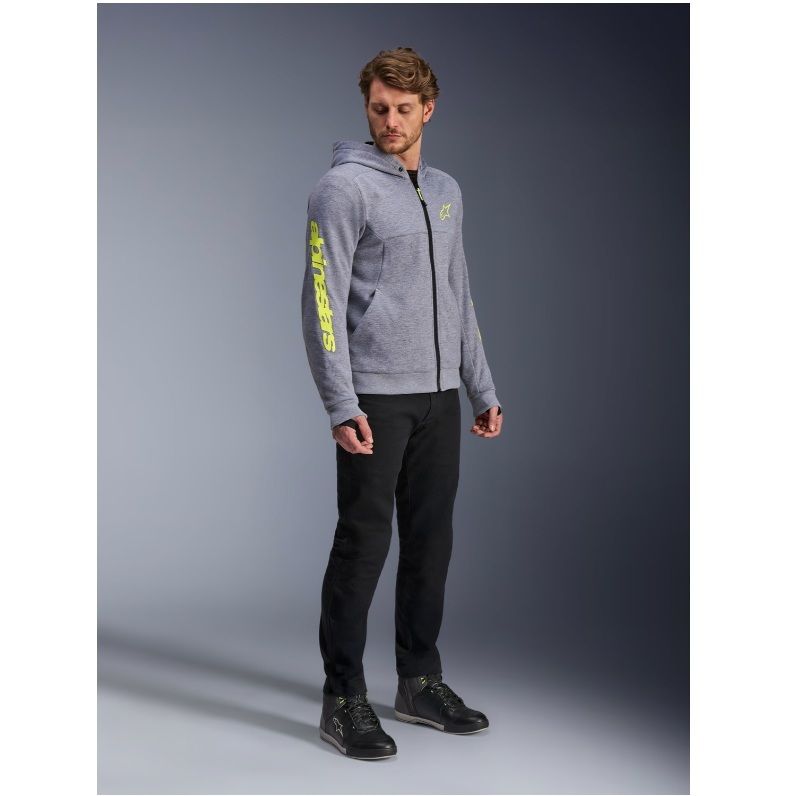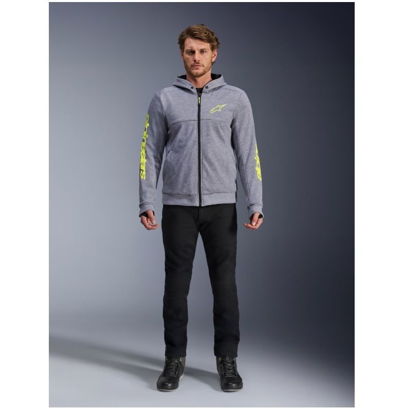 Bunda Chrome V2 Sport značky ALPINESTARS vhodná najmä do mesta je vyrobená z technickej fleece tkaniny s podšívkou so spevnením pomocou panelov z aramidových vlákien. Bunda je CE certifikovaná, má CE certifikované odnímateľné protektory ramien a lakťov, je prispôsobená na použitie s airbagovými systémami TECH-AIR®. Disponuje kapucňou, pružným pútkom pre fikxáciu rukávov, vonkajšími vreckami a vnútorným vodeodolným vreckom. Možno ju prepojiť s nohavicami pomocou textilných pútok.