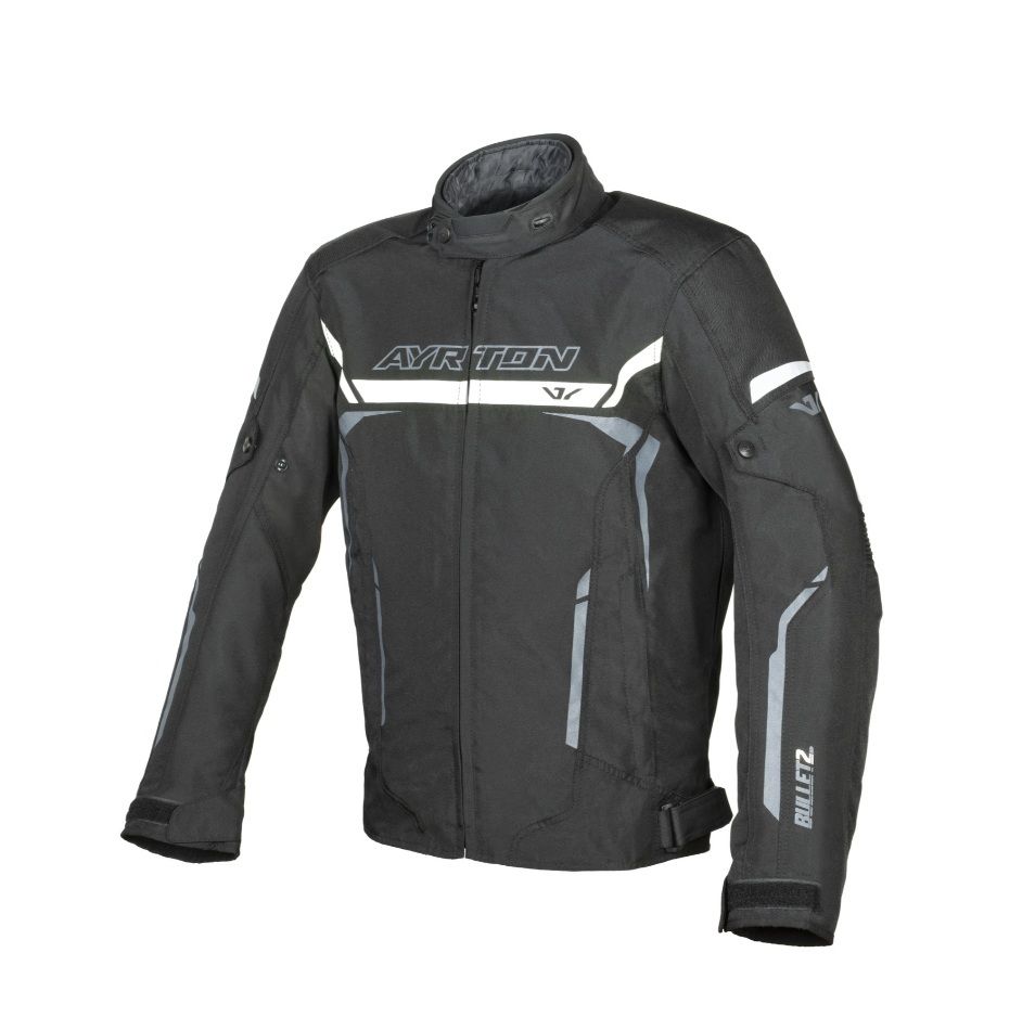 Bunda Bullet značky AYRTON s odnímateľnou termovložkou disponuje obšívkou s čiastočne vodeodolnou úpravou, odnímateľnými chráničmi lakťov a ramien LITE PRO, strečovými panelmi v oblasti lakťov, vreckami a zvýšeným golierom s pútkom na jeho upevnenie v otvorenej polohe a prípravou so zakladačom na umiestnenie hydrobagu. Na bunde je možné nastaviť obvodu spodného lemu, manžiet rukávov a oblasť bicepsov. Vďaka reflexným prvkom je zabezpečená lepšia viditeľnosť. Bundu je možné spojiť s nohavicami pomocou krátkeho zipsu.