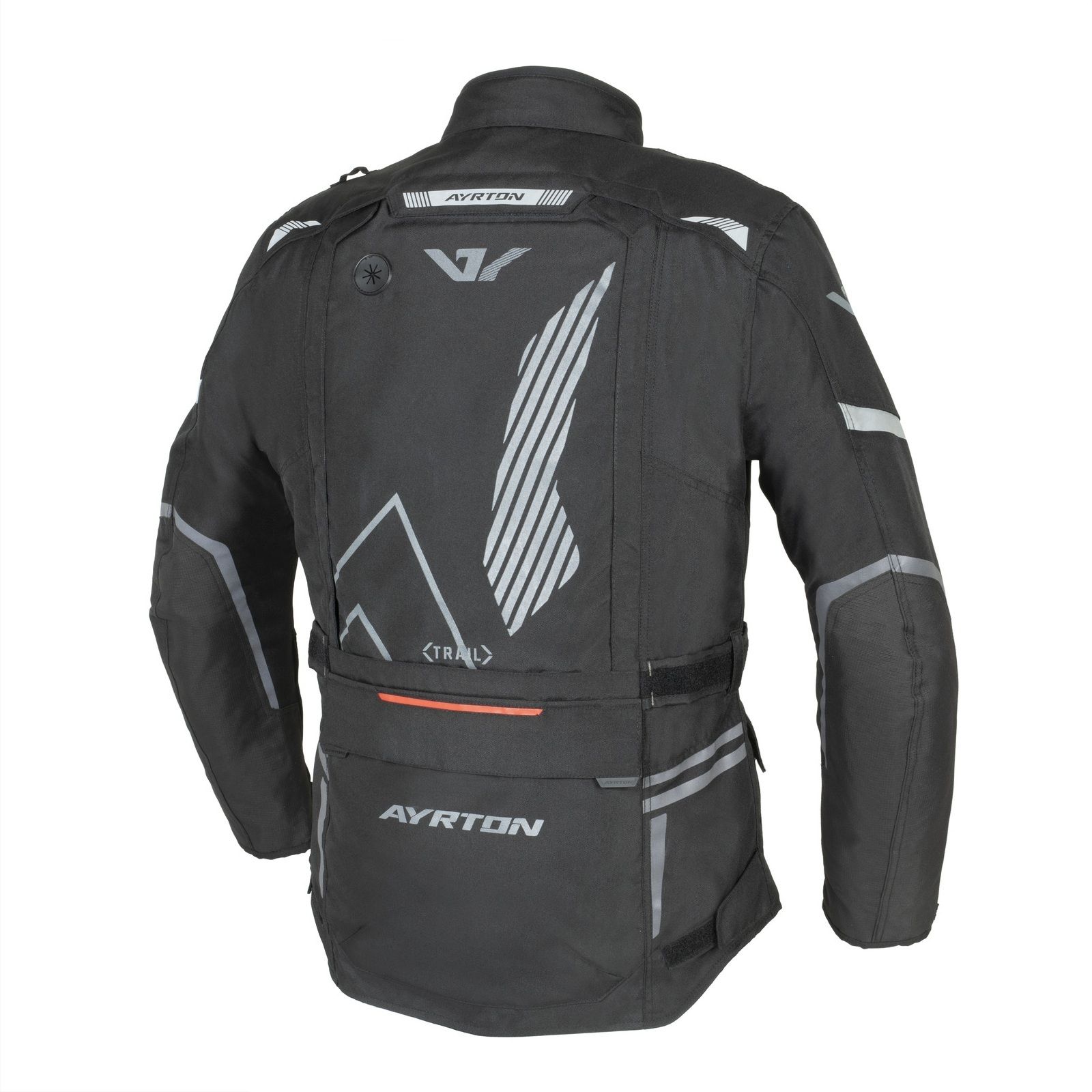 Bunda Trail značky AYRTON s odnímateľnou termovložkou a odnímateľnou laminovanou pláštenkou disponuje obšívkou s čiastočne vodeodolnou úpravou, odnímateľnými chráničmi lakťov a ramien LITE PRO, ventilčnými prvkami, strečovými panelmi v oblasti lakťov, vreckami, zvýšeným golierom s pútkom na jeho upevnenie v otvorenej polohe a prípravou so zakladačom na umiestnenie hydrobagu.