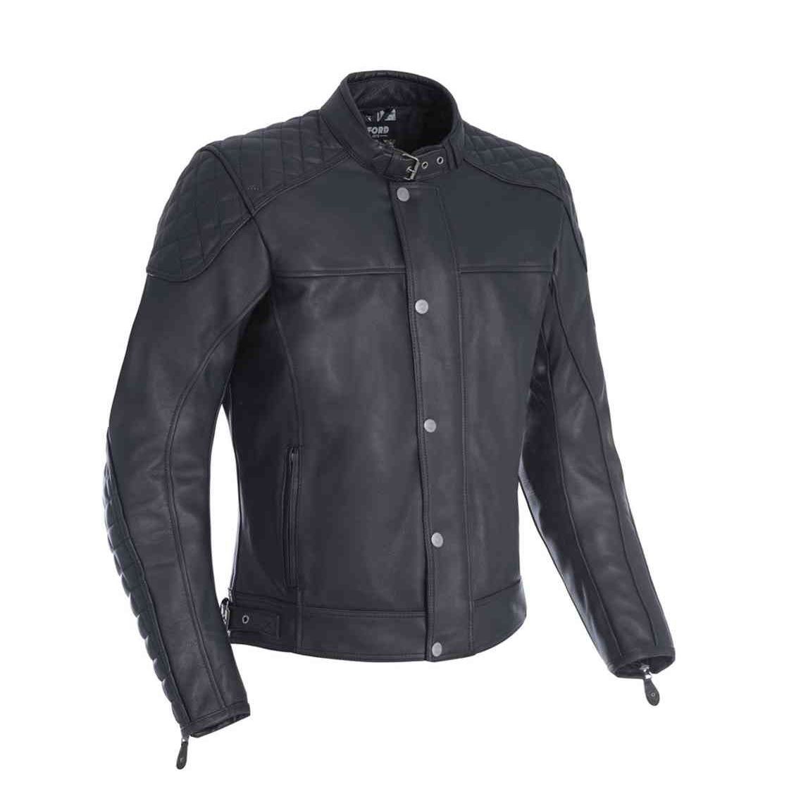 Bunda Hampton značky OXFORD vyrobená z prémiovej kože s prešívanými panelmi v oblasti lakťov a ramien je obohatená o odnímateľnú termo vložku a komfortný perforovaný golier. Na dôležitých miestach sú dvojité a trojité kožené panely, kĺbové protektory bundy majú CE certifikáciu a ako doplnkové vybavenie možno použiť chrbtový protektor. Na švy spojov sú použité nylonové nite a obvod pásu je nastaviteľný za pomoci patentu.