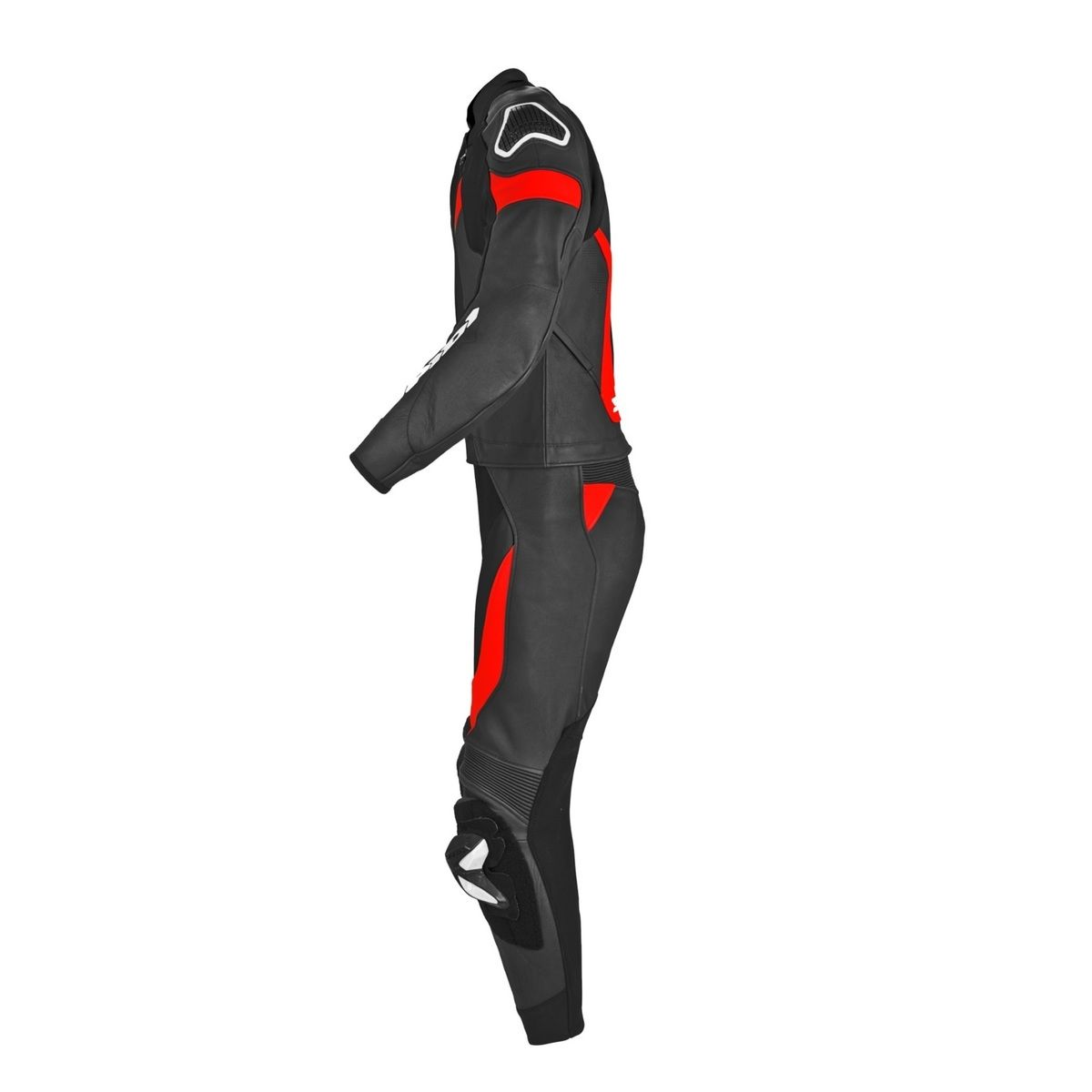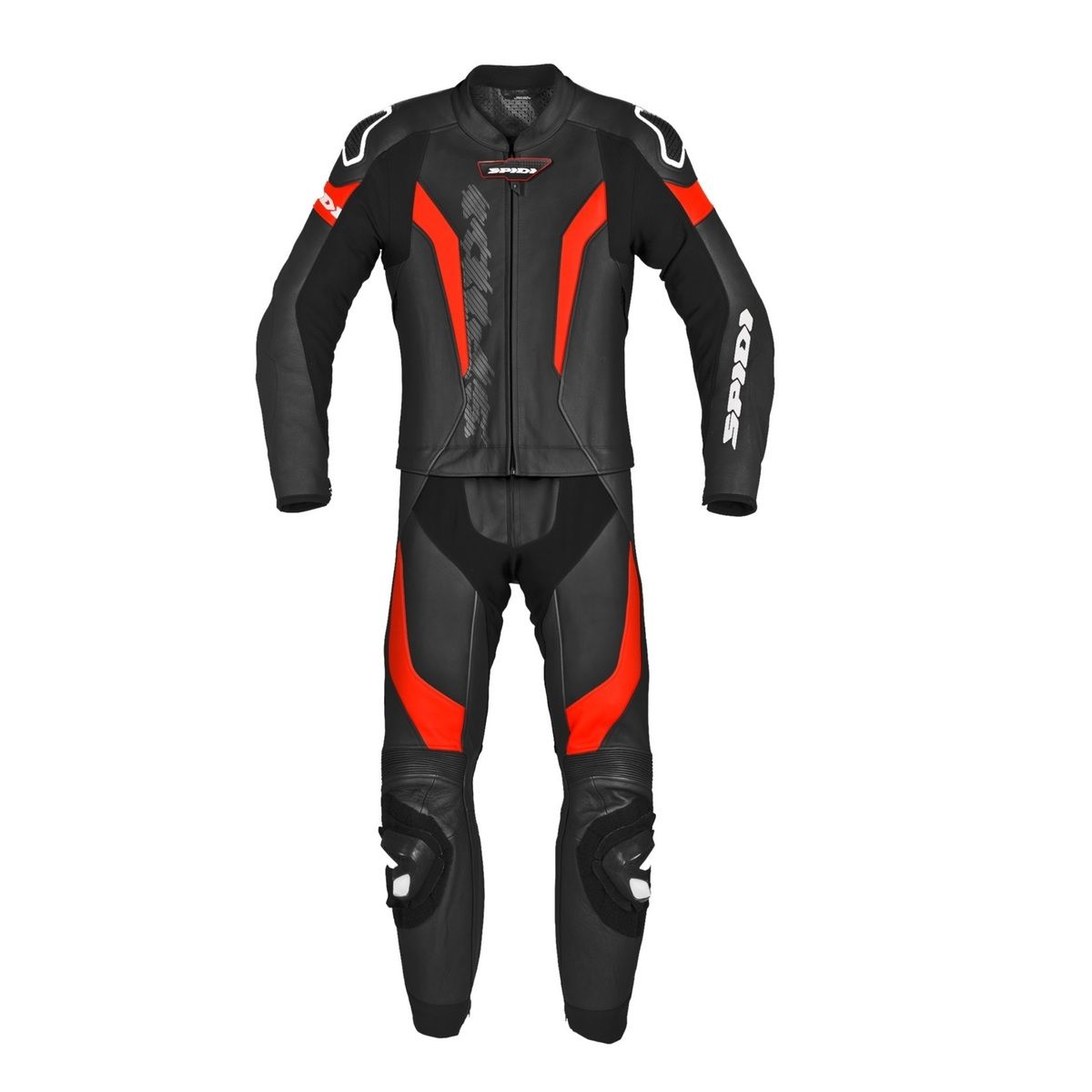 Dvojdielna kombinéza Laser Touring značky SPIDI vyrobená z talianskej hovädzej kože poskytuje maximálny komfort vďaka nylonovým a koženým strečovým panelom, perforovaným oblastiam, neoprénovému golieru a sieťovinovej podšívke. Kombinéza je CE certifikovaná, obsahuje nastaviteľné kolenné protektory, vonkajšie chrániče ramien Warrior Tech, vnútorné CE certifikované kĺbové a bedrové protektory a výstuž v oblasti kostrče.