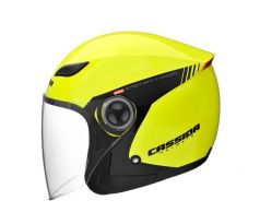 Prilba CASSIDA Jet Tech Corso (čierna matná/žltá fluo) Prilba Jet Tech Corso značky CASSIDA má škrupinu z polykarbonátu, dlhé plexi s antifog protizahmlievacou úpravou, dorazy s rýchloupínacím mechanizmom, slnečnú clonu a ventilačný systém s uzatvárateľnými krytmi ventilácií.