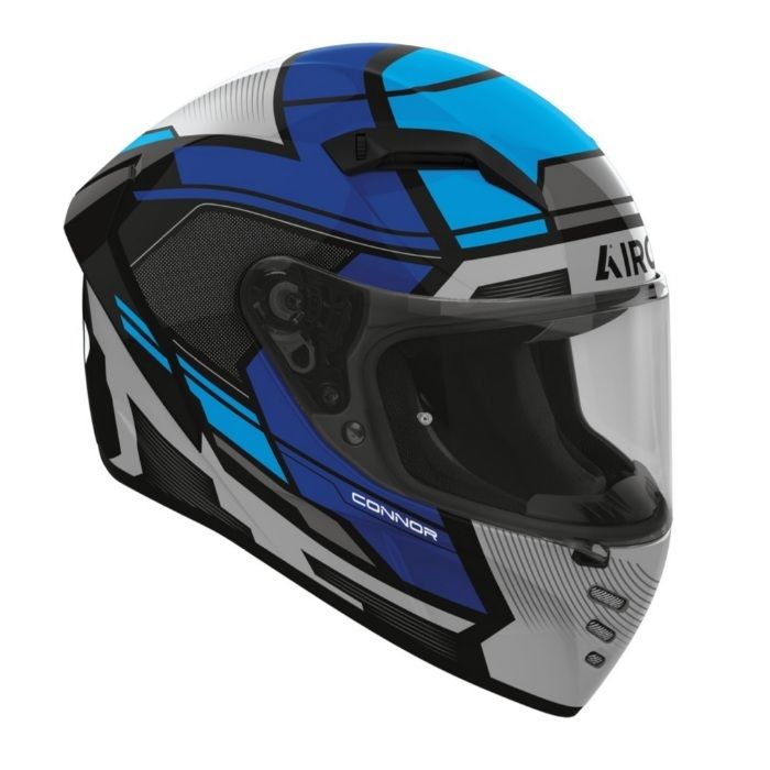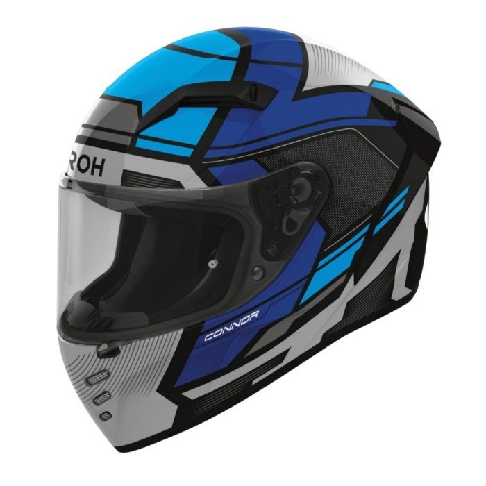Prilba Connor značky AIROH je nová generácia integrálnej prilby, ktorá nadväzuje na úspešný model Valor a prináša vylepšenú aerodynamiku testovanú vo veternom tuneli. Vďaka trom veľkostiam termoplastovej škrupiny a inovatívnemu interiéru ASN ponúka vynikajúce prispôsobenie a zvýšenú ochranu pri náraze podľa normy ECE 22.06. Jazdci ocenia nadštandardne široké plexi s rýchloupínacím systémom, efektívnu ventiláciu ovládateľnú aj v rukaviciach a kompletnú prípravu pre Bluetooth komunikátor.