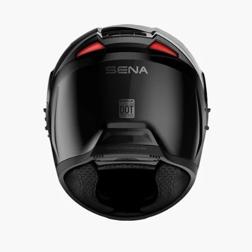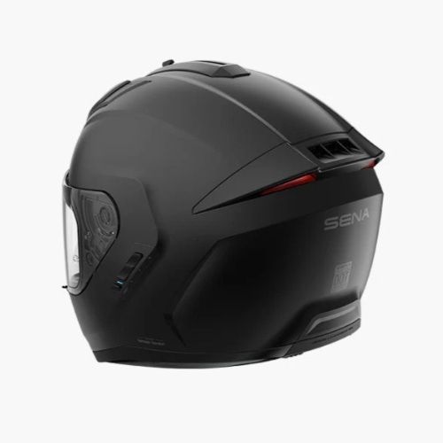 - Zadné svetlo má 3 módy a vôbec po prvýkrát u SENY reaguje na brzdenie, kedy svieti ešte jasnejšie. Nastavuje sa v aplikácii SENA Motorcycles