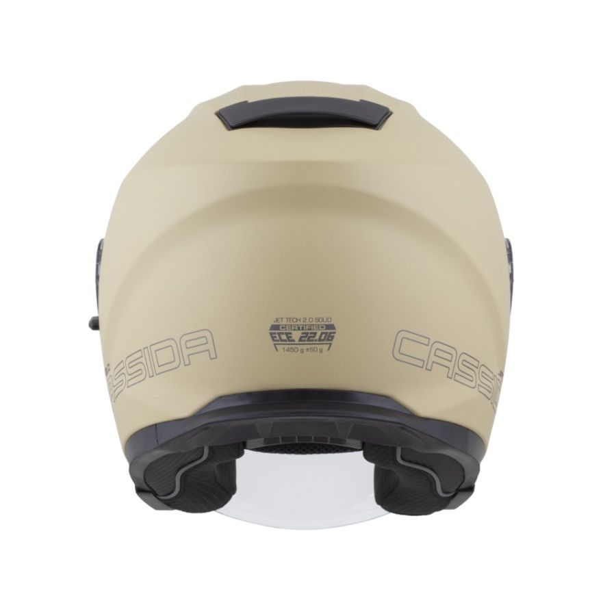 Prilba Jet Tech 2.0 Solid značky CASSIDA je prilba s odolnou sklolaminátovou škrupinou a EPS polysterénovým jadrom, obsahuje slnečnú clonu, dlhé plexi s antifog úpravou, ventilačné porty a praktické zapínanie na mikrometrickú pracku. Prilba je homologizovaná normou 22.06.J, disponuje komfortným, plne odnímateľným interiérom, rýchloodopínacím mechanizmom plexi s viacerými polohami nastavenia pozície a bočnými dorazmi pre zaistenie plexi. Medzi ďalšie výhody patria tvarovo prispôsobené lícnice na použitie okuliarov, príprava pre montáž komunikátora a reflexné prvky.