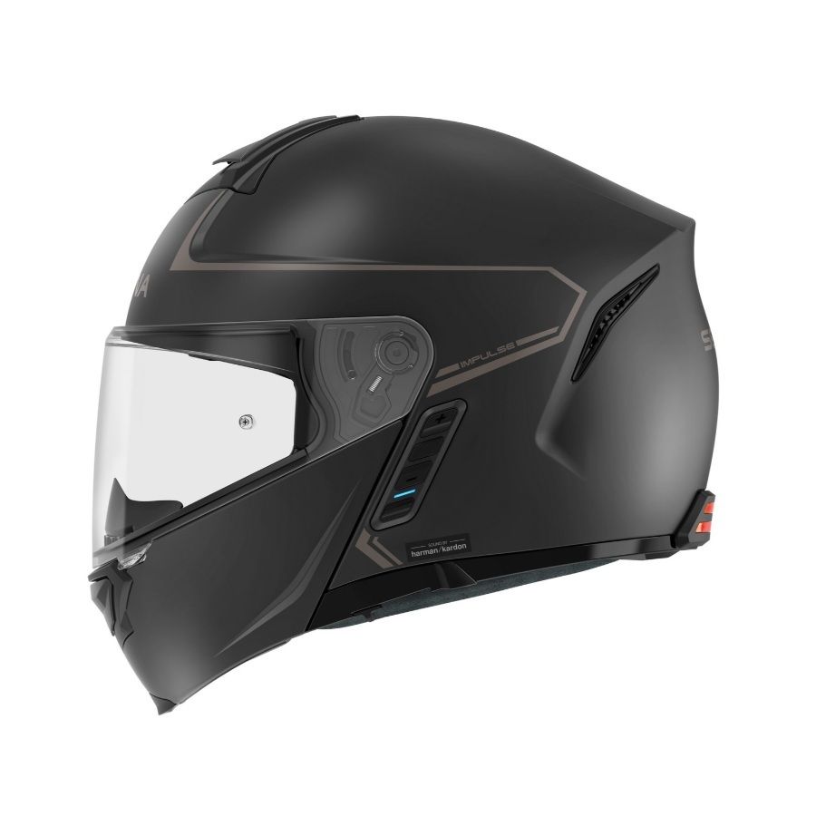 Úplne nová prilba Impulse je modulárna inteligentná prilba vybavená špičkovou technológiou Mesh Intercom™ a Bluetooth® Intercom spoločnosti Sena a prémiovými reproduktormi a mikrofónom od odborníkov na zvuk zo spoločnosti Harman Kardon. S pomocou spoločnosti Harman Kardon prinášajú odborne vyladené reproduktory modelu Impulse novú úroveň presnosti a čistoty zvuku v prilbe a úplne nový mikrofón pre bezprecedentnú kvalitu odchádzajúceho zvuku. Prilba sa môže pochváliť integrovaným zadným svetlom pre lepšiu viditeľnosť jazdca a praktickú výsuvnú slnečnú clonu. Prilba Impulse bola vyrobená s kompozitnou škrupinou zo sklených vlákien s certifikáciou DOT a ECE a má stredne oválny strih. Štyri strategicky umiestnené vetracie otvory, vetrací otvor na brade, horný vetrací otvor a dva výfukové otvory umožňujú prúdenie vzduchu počas jazdy.