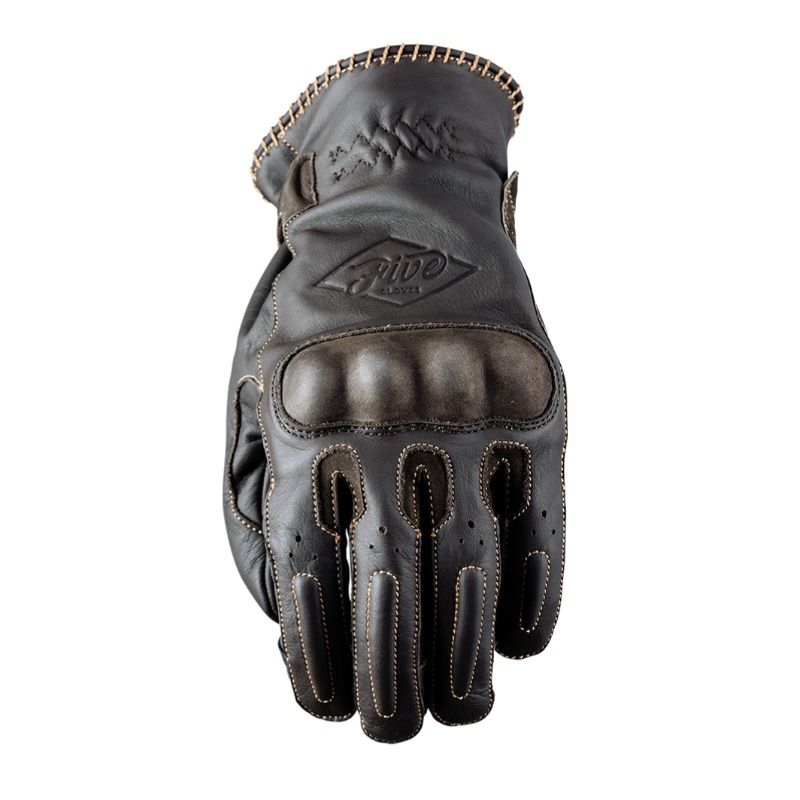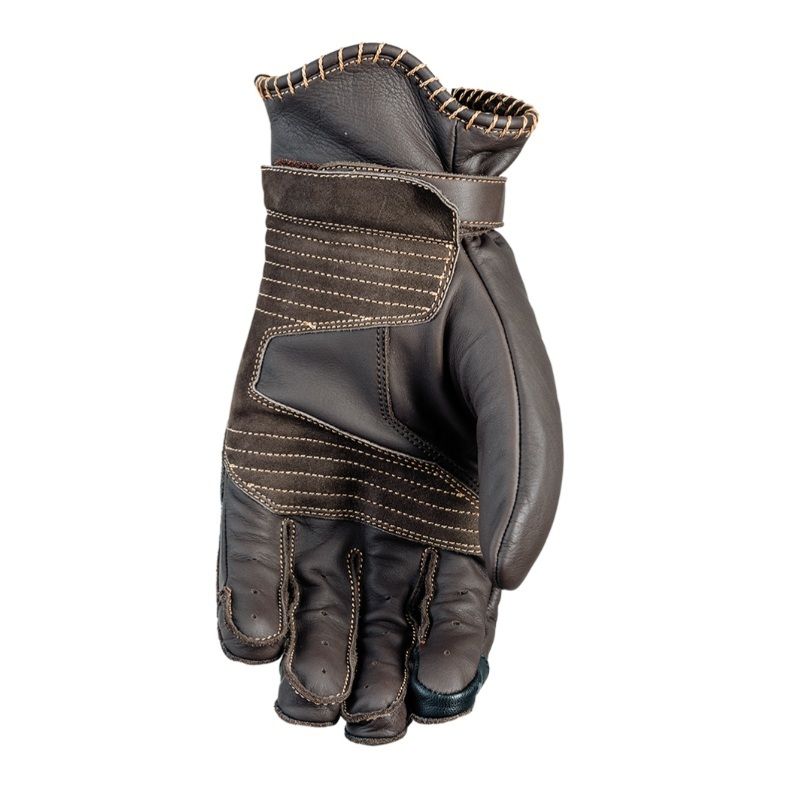 Rukavice Oklahoma značky FIVE patria medzi veľmi komfortné retro rukavice vyrobené z kvalitnej hovädzej kože, dlaň je spevnená nubukovou výstužou a manžeta sa zapína na suchý zips. Ochrana ruky je zabezpečená jednodielnym kĺbovým protektorom a penovými výstužami na prstoch. Dizajn rukavice je ozvláštnený vonkajším prešívaním, vyrazeným logom a koženým prekrytím suchého zipsu.