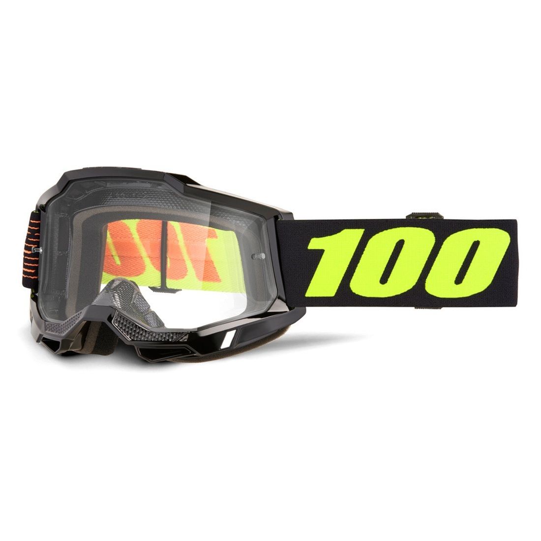 Okuliare Accuri 2 značky 100% sú vybavené trojvrstvovou penou spoľahlivo pohlcujúcou pot, 45 mm popruhom so silikónovou aplikáciu, 9 pinovým uchytením plexi a polykarbonátovou šošovkou s protizahmlievacou úpravou. Okuliare disponujú vylepšeným uchytením, tesnením a poskytujú o 17,5% väčšie vertikálne zorné pole.