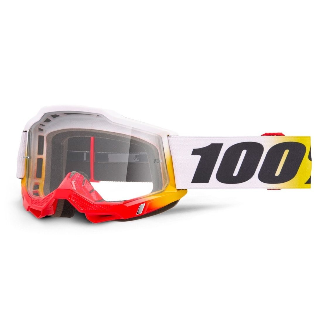 Okuliare Accuri 2 značky 100% sú vybavené trojvrstvovou penou spoľahlivo pohlcujúcou pot, 45 mm popruhom so silikónovou aplikáciu, 9 pinovým uchytením plexi a polykarbonátovou šošovkou s protizahmlievacou úpravou. Okuliare disponujú vylepšeným uchytením, tesnením a poskytujú o 17,5% väčšie vertikálne zorné pole.