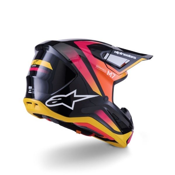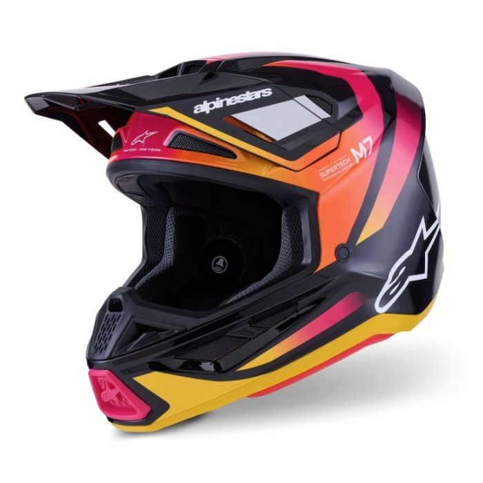 Prilba Supertech M7 značky ALPINESTARS je prémiová terénna prilba z viackompozitnej škrupiny, ktorá vďaka výrobe v podtlakovej peci dosahuje nízku hmotnosť 1260 g pri extrémnej mechanickej odolnosti. Jej unikátna konštrukcia s technológiou PLASMA a zníženým profilom chráni kľúčnu kosť a prekonáva bezpečnostné limity normy ECE 22.06 pri rotačnom náraze až o 76 %. Maximálny jazdný komfort zabezpečuje 20 ventilačných portov a patentovaný systém A-HEAD, ktorý umožňuje individuálne nastavenie výšky a uhla prilby presne podľa tvaru vašej hlavy. Prilba je navyše vybavená systémom rýchloodopínania šiltu aj lícnic (ERS) a je plne pripravená na použitie hydrobagu či komunikátora.