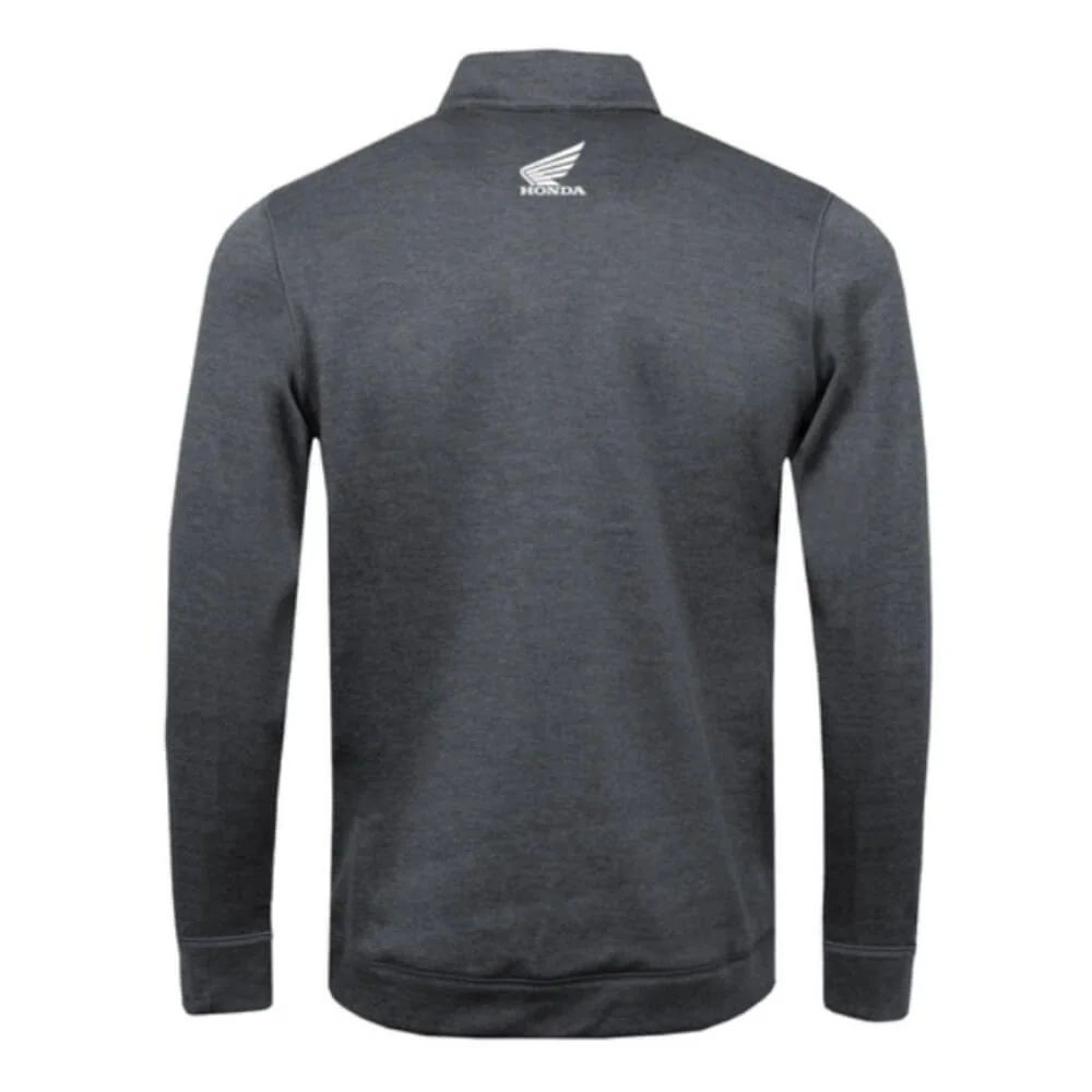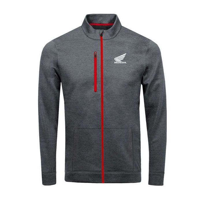 Mikina Tactical značky HONDA so zapínaním na zips, s logom krídla na ľavej strane na hrudi a pod golierom na chrbte je vyrobená z 88% polyesteru a 12% elastan - 280 g/m². Bunda je nenápadná, špičková a štýlová, ideálna na bežné nosenie, ale aj ako stredná vrstva pri jazde a nevyhnutná výbava na každé dobrodružstvo.