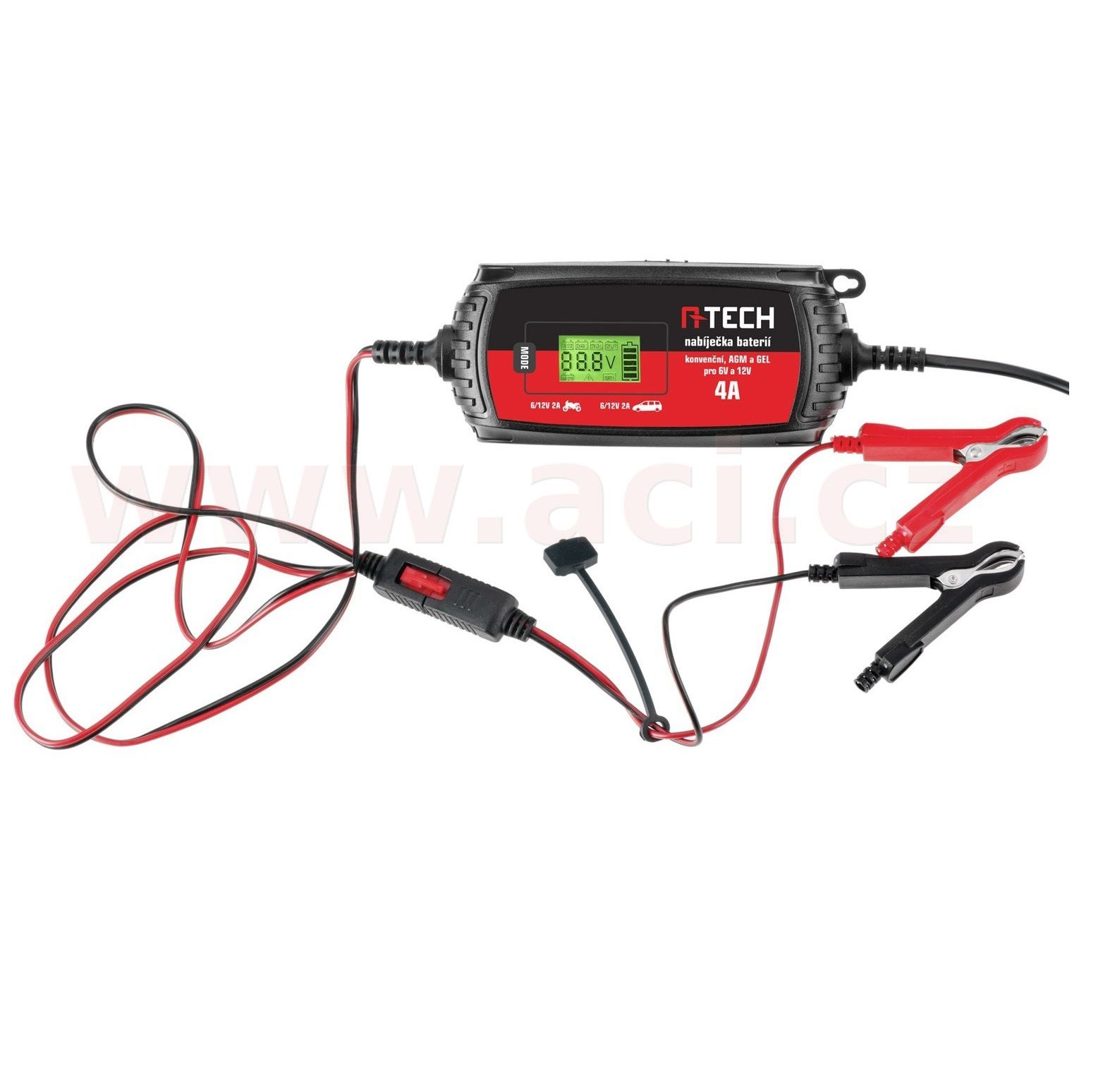 Automatická nabíjačka značky A-Tech je vhodná pre väčšinu 6/12 V akumulátorov. Je určená pre batérie s kapacitou až do 120 Ah, zároveň je použiteľná aj ako udržiavacia nabíjačka. Výhodou je indikátor stavu nabitia a chyby polarity, ochrana pred skratom a dodáva sa s dvoma sadami konektorov. Nabíjačka je určená pre GEL, AGM a konvenčné batérie. Maximálny nabíjací prúd je 4 A a prívodný kábel je dlhý 1,5 m.