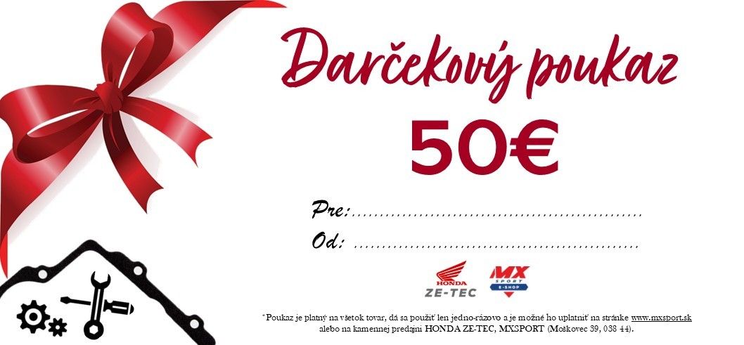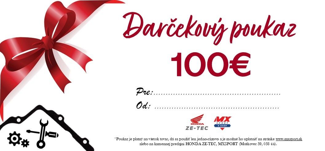 Hodnota danej poukážky je 20 €. V prípade, že by ste mali záujem podarovať poukážku v inej hodnote, kontaktujte nás prosím na email obchod@mxsport.sk, prípadne na t.č. +4219142266220. Vytvoríme Vám poukážku na mieru.